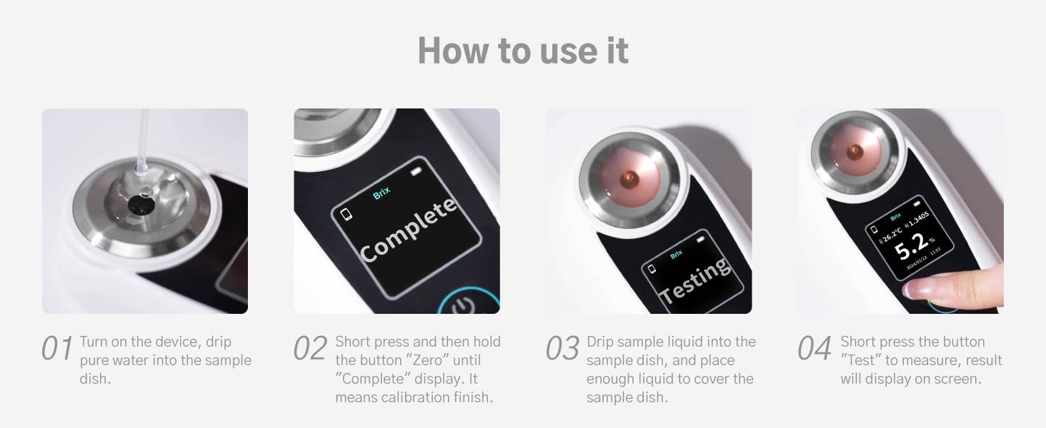• Used for measuring the sugar content and concentration in fruits, vegetables, beverages, and more.